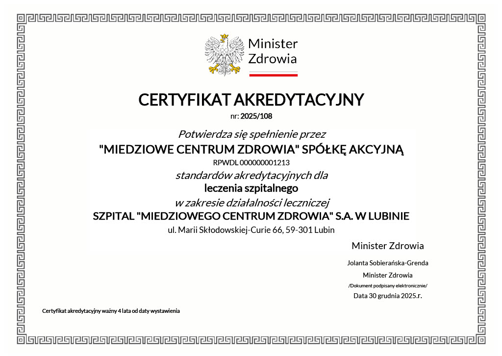 Sukces ten jest efektem zaangażowania, profesjonalizmu i konsekwentnej pracy całego zespołu MCZ – lekarzy, pielęgniarek, personelu medycznego, administracyjnego i technicznego – którzy każdego dnia dbają o bezpieczeństwo, komfort oraz wysoką jakość opieki nad pacjentami.
