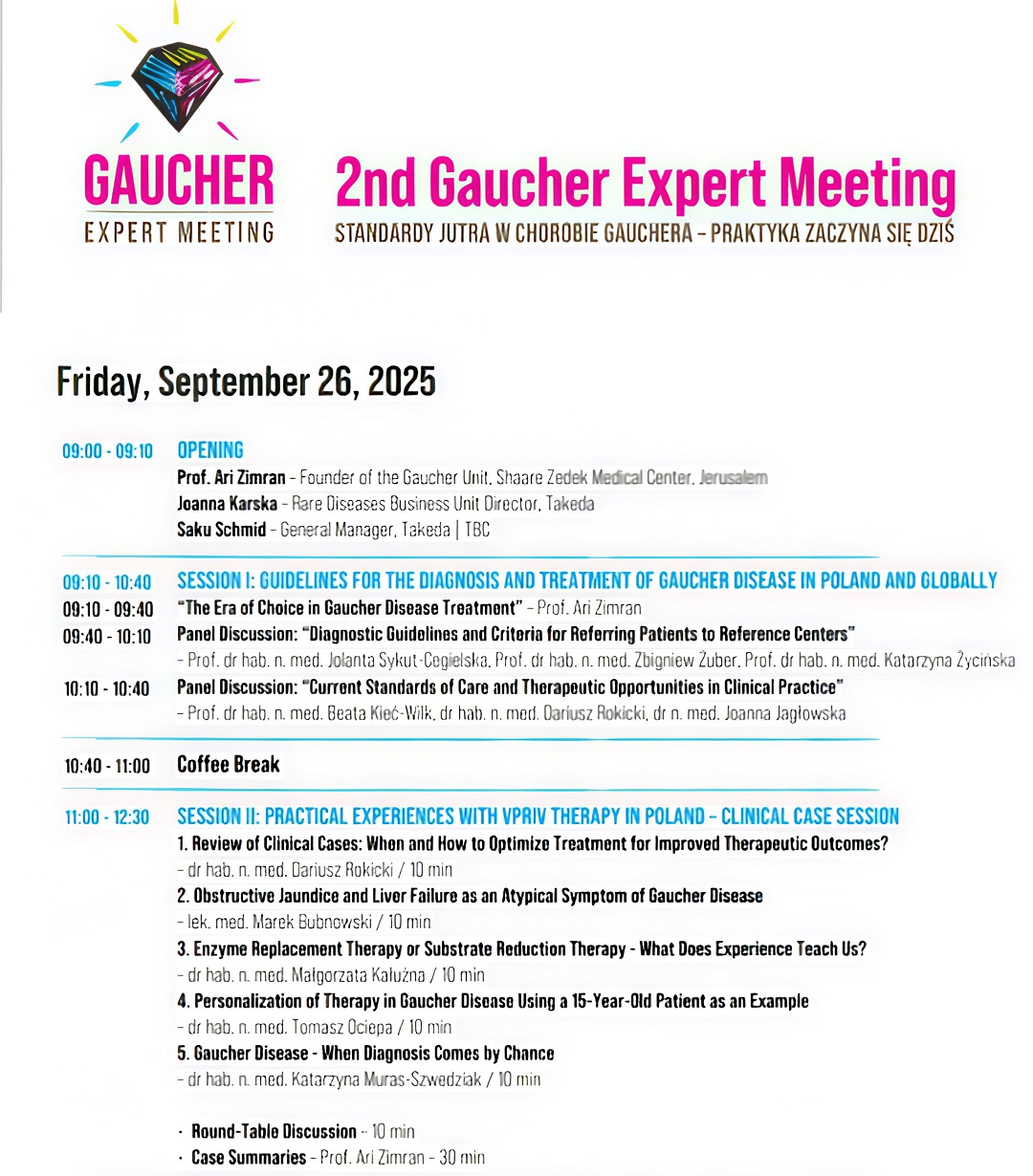 W dniach 25-26.09.2025 r. w Warszawie po raz drugi odbyła się międzynarodowa konferencja pn. Gaucher Expert Meeting, w której aktywnie uczestniczyli lekarze z "MIEDZIOWEGO CENTRUM ZDROWIA" S.A. Lekarz Marek Bubnowski specjalista chorób wewnętrznych - reumatolog z Oddziału Chorób Wewnętrznych i Diabetologii Szpitala „MCZ” S.A. wygłosił wykład o nietypowych manifestacjach choroby Gauchera.