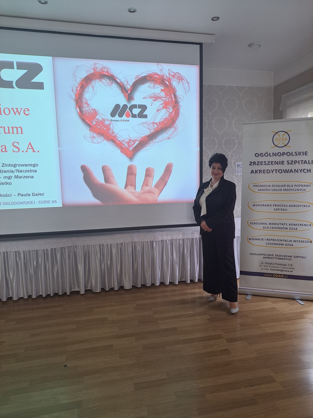 Pani mgr Marzena Łokietko – Pełnomocnik ds. Zintegrowanego Systemu Zarządzania oraz Naczelna Pielęgniarka – przedstawiła doświadczenia „MCZ” S.A. oraz sposób, w jaki szpital uzyskał 93% w przeglądzie akredytacyjnym CMJ według nowych standardów. Uzyskany wynik podkreśla wysoki poziom kultury pracy oraz zaangażowanie naszego personelu w zapewnianie najwyższej jakości opieki medycznej, bezpieczeństwa pacjenta i wysokiego poziomu działalności klinicznej.