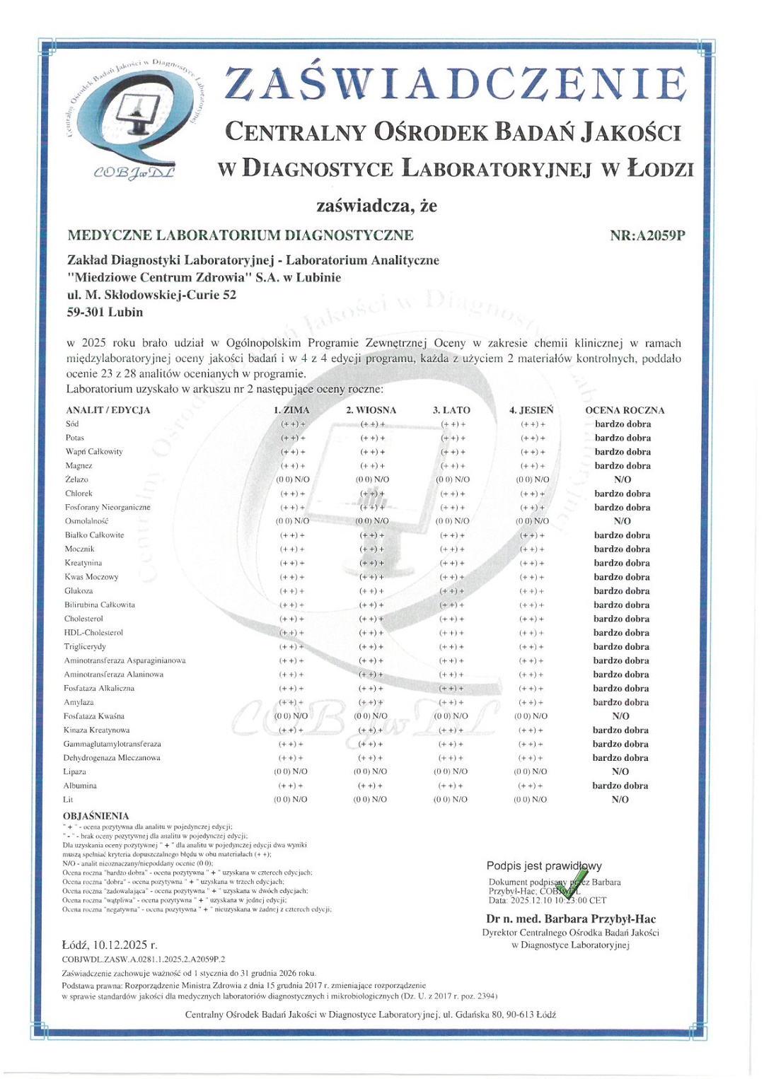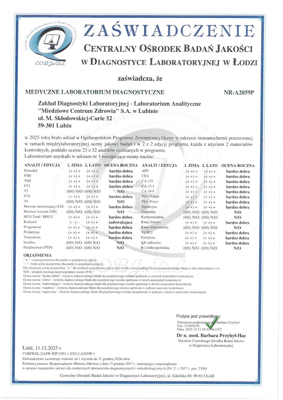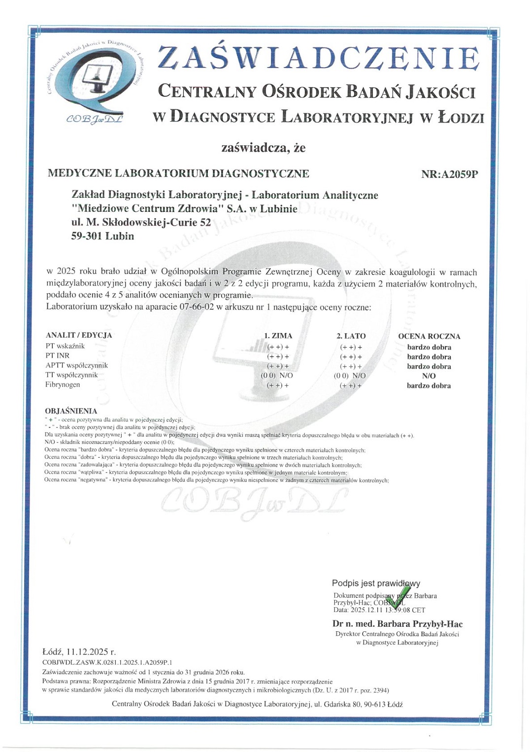 mgr Elżbieta Lisiecka - specjalista II stopnia analityki klinicznej tel. 76 84 60 371