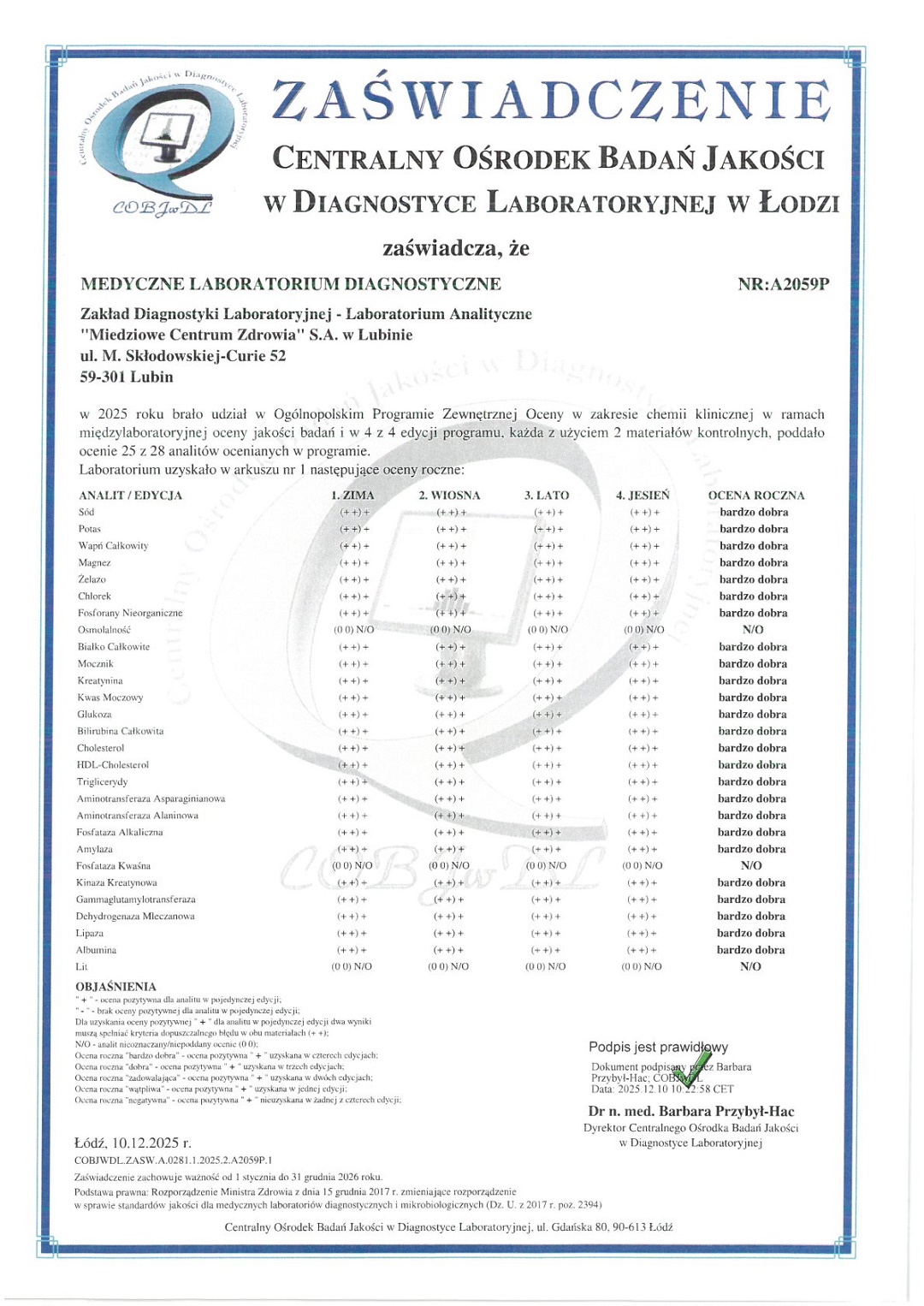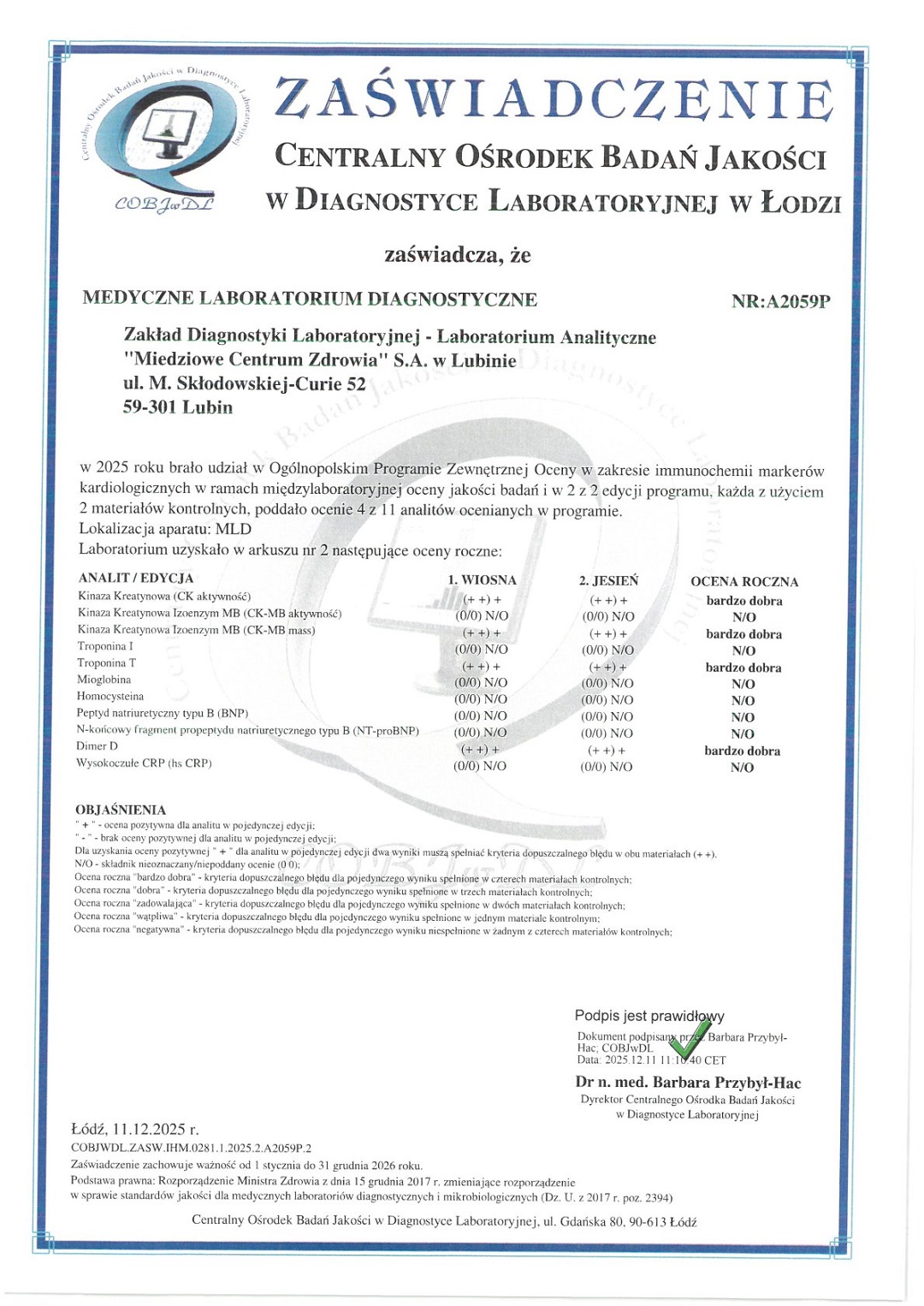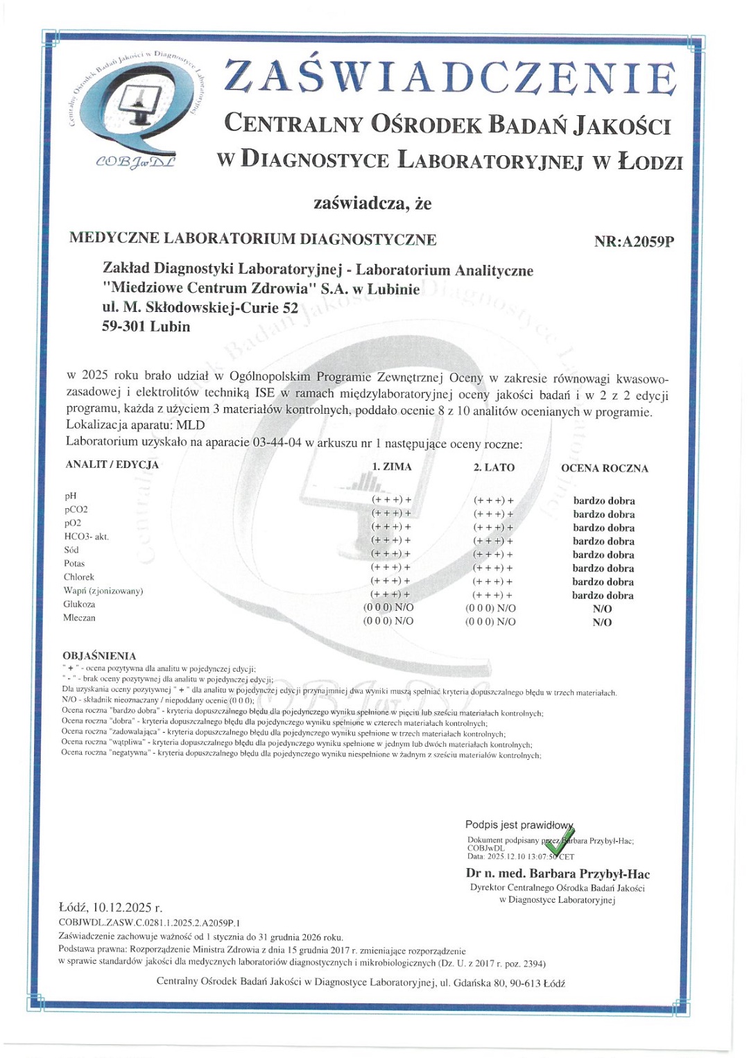 mgr Elżbieta Lisiecka - specjalista II stopnia analityki klinicznej tel. 76 84 60 371