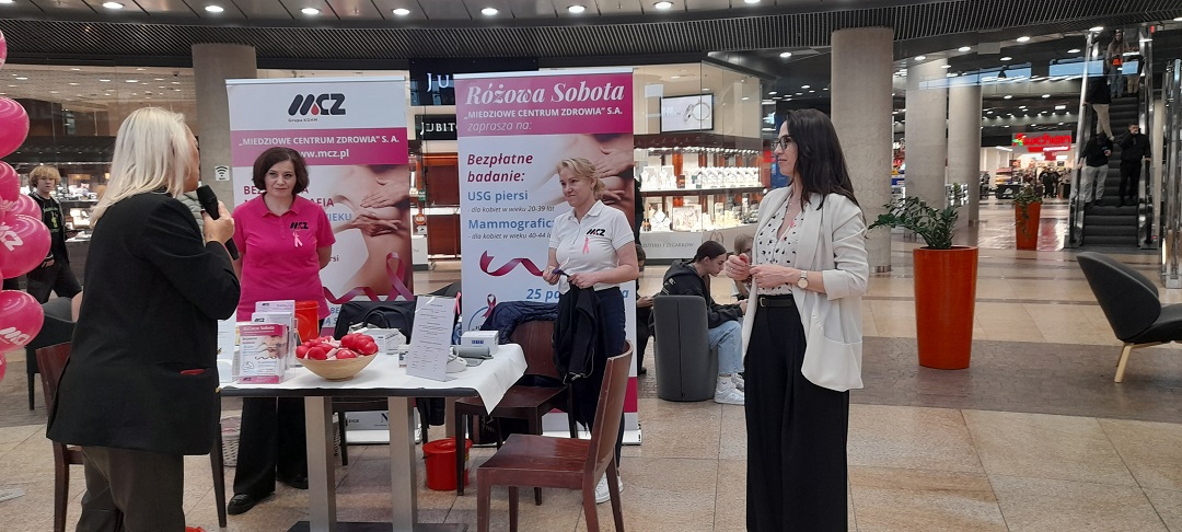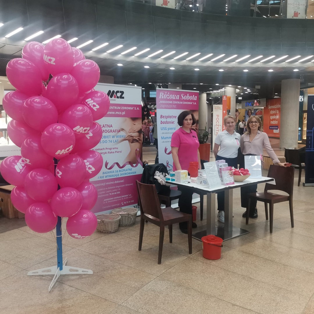 W trakcie indywidualnych spotkań i ciekawych rozmów przypominaliśmy o dostępnych w „MIEDZIOWYM CENTRUM ZDROWIA” S.A. badaniach profilaktycznych realizowanych w ramach programów przesiewowych tj. profilaktyka raka piersi (mammografia), profilaktyka raka szyjki macicy (cytologia), profilaktyka raka jelita grubego (kolonoskopia). Na miejscu można było wykonać pomiar ciśnienia i oznaczyć poziom cukru we krwi, a także otrzymać instruktaż samobadania piersi wraz z zakresem podstawowych badań, które w ramach profilaktyki każda kobieta powinna wykonywać.