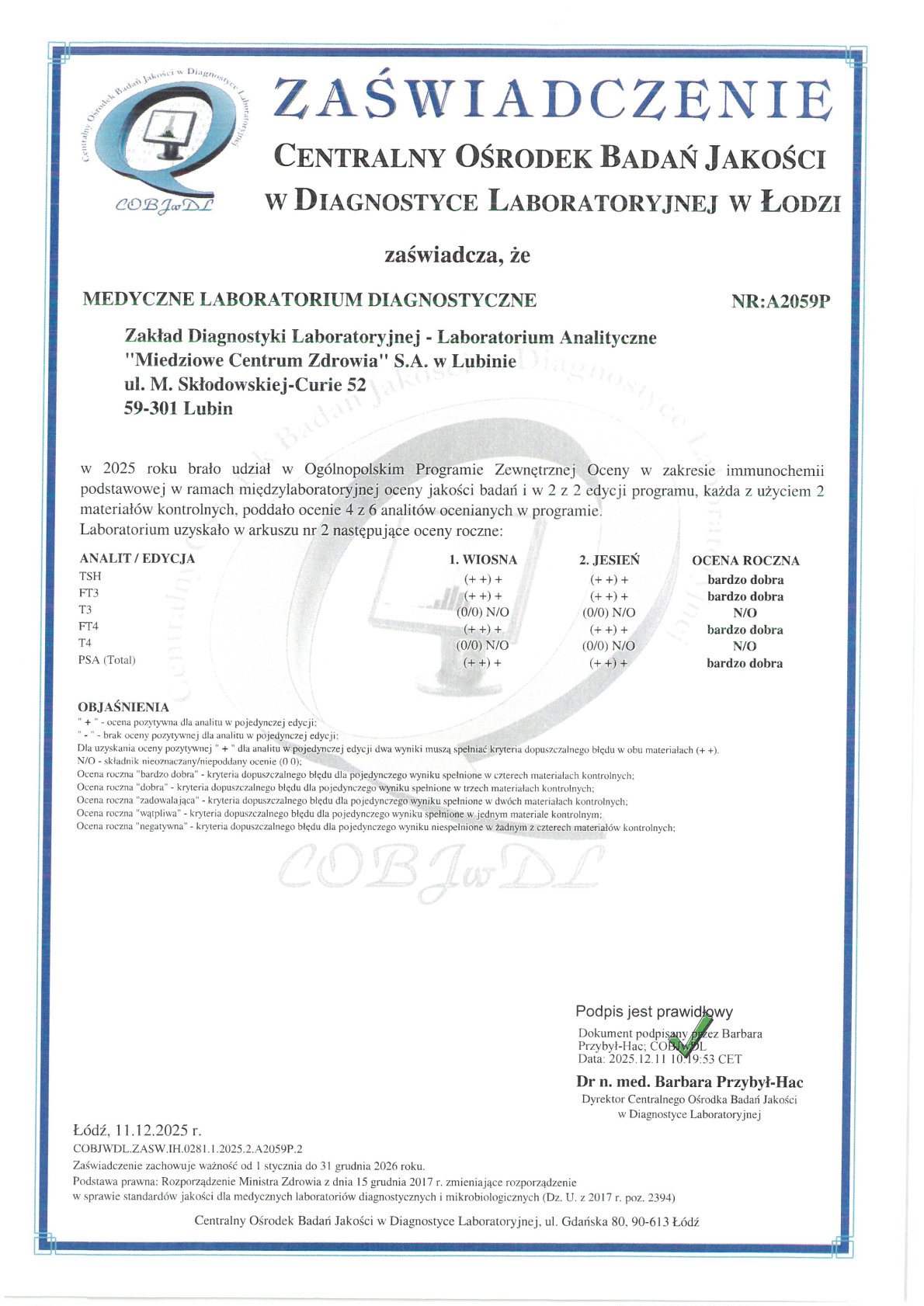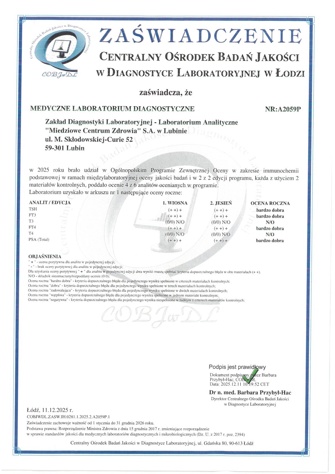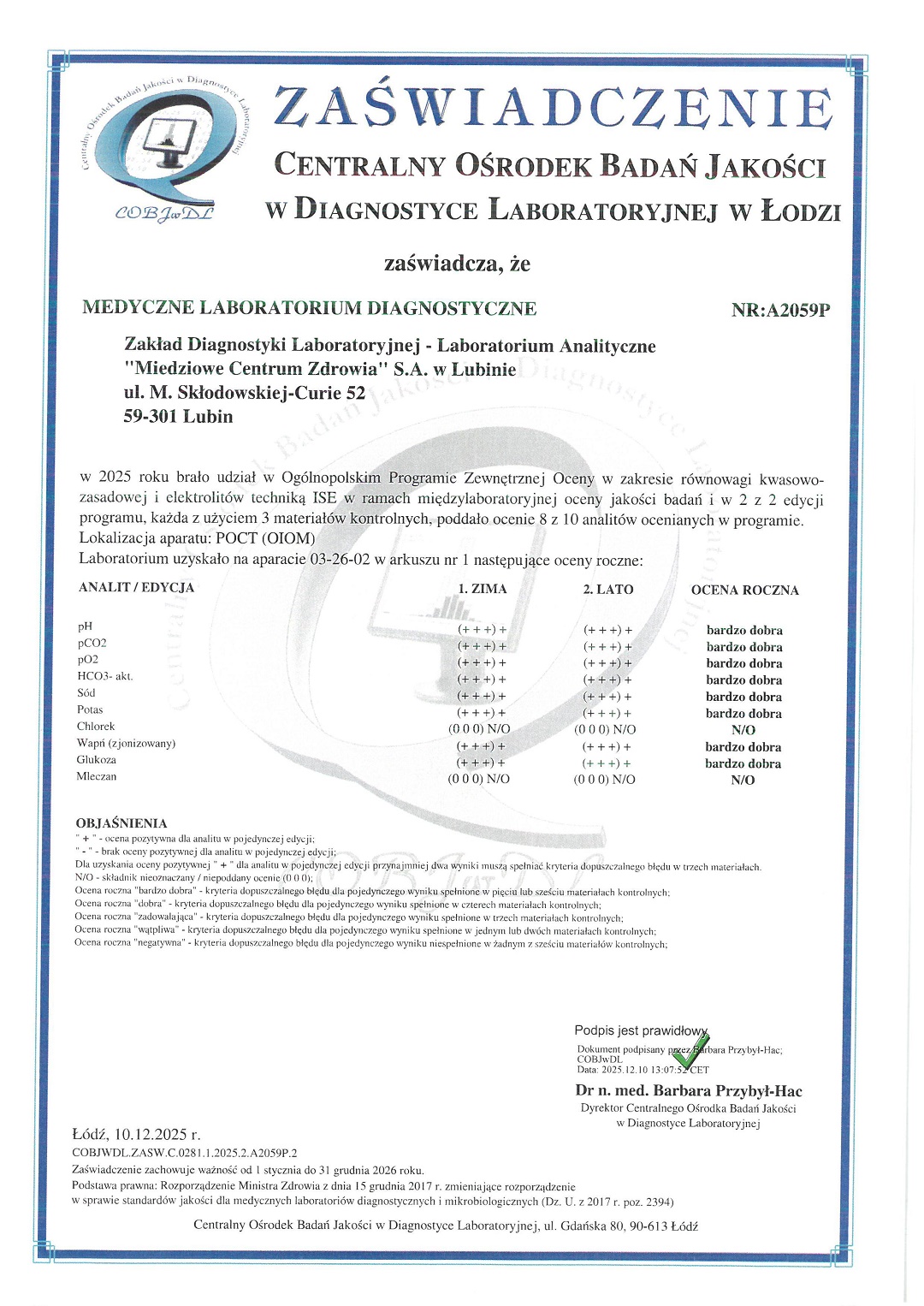 mgr Elżbieta Lisiecka - specjalista II stopnia analityki klinicznej tel. 76 84 60 371